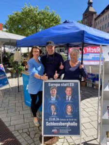 Am 11.05.2024 hat uns MdB Wolfgang Wiehle unterstützt. Dazu schreibt er: „Mit Herzblut und bei Kaiserwetter: Am Samstag durfte ich über drei Stunden den Infostand am Hauptplatz in Landsberg am Lech unterstützen. Ich danke für die Einladung des Landsberger Kreisverbands und der Kreisvorsitzenden Gabi Schick. Gute Stimmung, gute Gespräche, Gelegenheit zum Zurechtrücken der Mainstream-Hetze. Zum Beispiel: wir haben viele Mitglieder mit Migrationshintergrund in der AfD – wer die deutsche Sprache lernt und seinen Teil beiträgt, ist für uns in Deutschland herzlich willkommen. Remigration heißt für uns Abschiebung derjenigen, die sich nicht integrieren wollen und kein Bleiberecht haben! Im Gespräch lässt sich vieles darstellen und klarstellen. Das ist jede Mühe wert!“